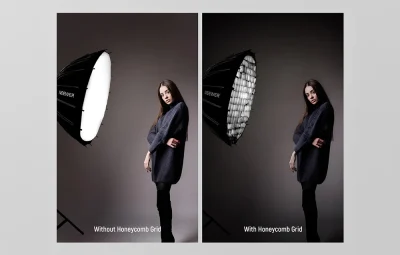Το grid τύπου honeycomb που περιλαμβάνεται επιτρέπει ακριβή έλεγχο της κατεύθυνσης του φωτός, περιορίζοντας τη διάχυση εκτός κάδρου. Έτσι μπορείτε να τονίσετε τα χαρακτηριστικά του προσώπου ή να δημιουργήσετε δραματικό αποτέλεσμα χωρίς να επηρεάζεται το φόντο.