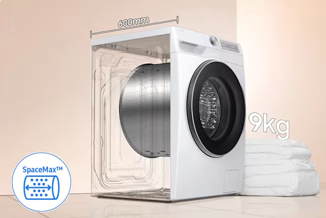 Χάρη στην τεχνολογία SpaceMax™, το πλυντήριο στεγνωτήριο Samsung 11kg διαθέτει μεγαλύτερο εσωτερικό κάδο χωρίς αύξηση εξωτερικών διαστάσεων. Έτσι, μπορείς να πλύνεις ακόμη και ογκώδη αντικείμενα, όπως παπλώματα, σε συσκευή βάθους μόλις 60cm.